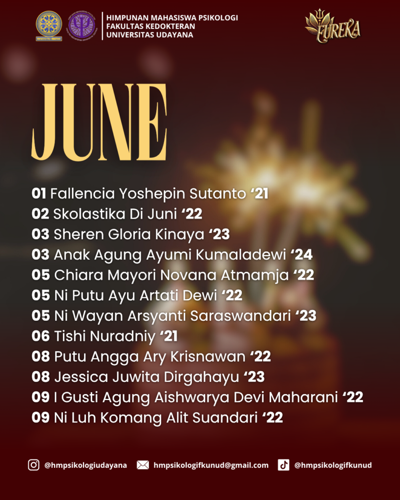 HM Psikologi FK Unud mengucapkan โ€œ๐—ฆ๐—ฒ๐—น๐—ฎ๐—บ๐—ฎ๐˜ ๐—จ๐—น๐—ฎ๐—ป๐—ด ๐—ง๐—ฎ๐—ต๐˜‚๐—ปโ€ kepada ๐˜€๐—ฒ๐—น๐˜‚๐—ฟ๐˜‚๐—ต ๐—ฐ๐—ถ๐˜ƒ๐—ถ๐˜๐—ฎ๐˜€ Program Studi Psikologi FK Unud yang lahir pada bulan Juni. Wishing you a joyful birthday this June! May love, laughter, and genuine happiness surround you today and always ๐ŸŽ๐ŸŽˆ