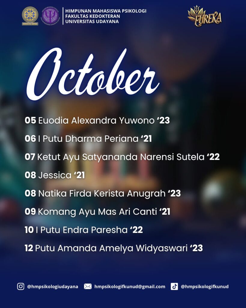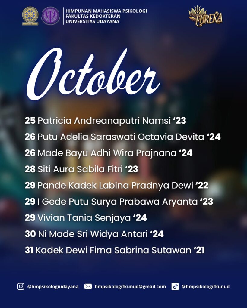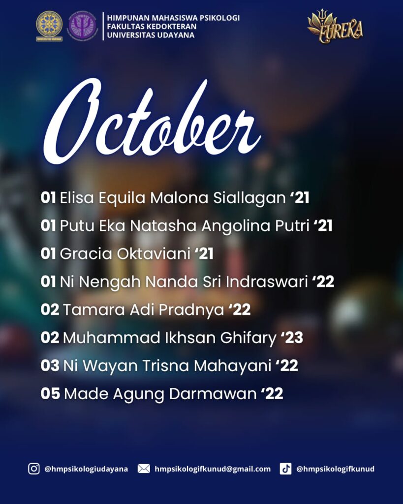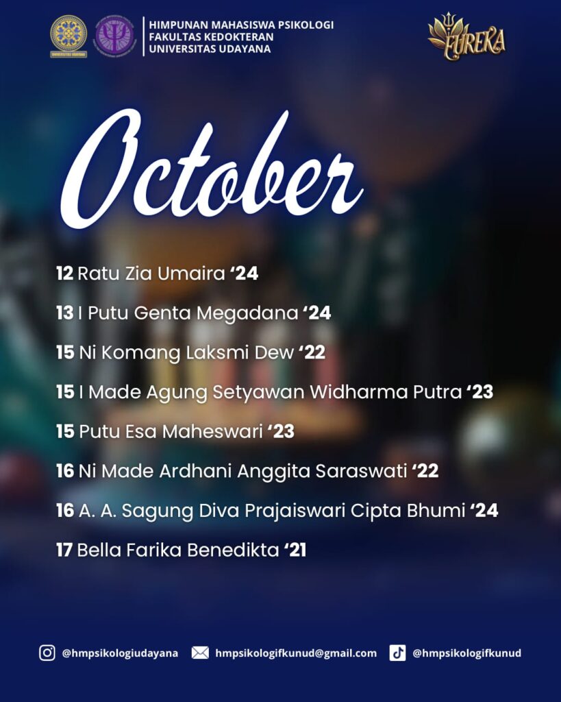 HM Psikologi FK Unud mengucapkan โ๐ฆ๐ฒ๐น๐ฎ๐บ๐ฎ๐ ๐จ๐น๐ฎ๐ป๐ด ๐ง๐ฎ๐ต๐๐ปโ kepada ๐๐ฒ๐น๐๐ฟ๐๐ต ๐ฐ๐ถ๐๐ถ๐๐ฎ๐ Program Studi Psikologi FK Unud yang lahir pada bulan Oktober. ๐๐๐จ๐๐๐ฃ๐ ๐ฎ๐ค๐ช ๐ ๐ฎ๐๐๐ง ๐๐๐ก๐ก๐๐ ๐ฌ๐๐ฉ๐ ๐๐ง๐๐๐๐ฉ ๐ก๐๐ช๐๐๐ฉ๐๐ง ๐๐ฃ๐ ๐ข๐ค๐ข๐๐ฃ๐ฉ๐จ ๐ฉ๐๐๐ฉ ๐ข๐๐ ๐ ๐ฎ๐ค๐ช๐ง ๐จ๐ค๐ช๐ก ๐จ๐ข๐๐ก๐ ๐๐